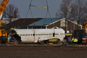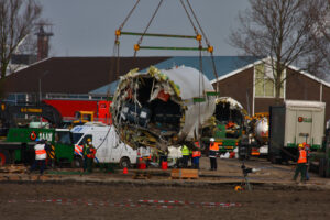 Schiphol – De romp van het inmiddels ruim twee weken geleden gecrashte vliegtuig Turkish Airlines TK 1951, is vrijdagmiddag met een hijskraan op een trailer gelegd om komende zondag te vervoeren. Vanaf deze week is men druk bezig om het vliegtuig klaar te maken voor transpoort.