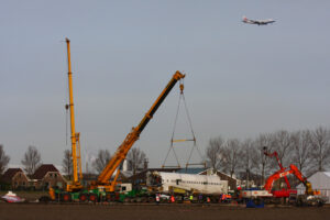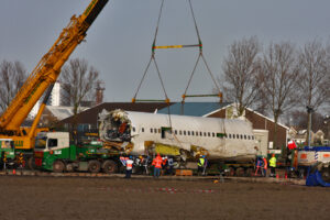 De bedoeling is dat komende zondag alle vliegtuigonderdelen in een keer over de weg naar een loods worden gebracht, om zo het verkeer zo min mogelijk te hinderen.
