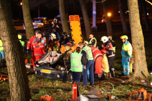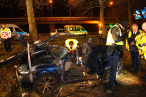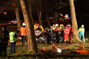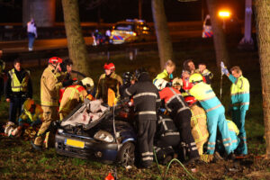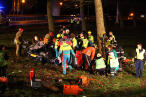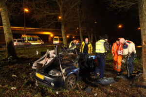 Beverwijk – Bij een verkeersongeval op de A9 in Beverwijk zijn in de nacht van zaterdag op zondag vijf personen gewond geraakt. Vier daarvan raakte ernstig gewond en kwamen bekneld te zitten in het voertuig. Rond kwart voor twee reed de auto op de afrit naar de A22 richting IJmuiden toen deze door nog onbekende oorzaak van de weg af raakte. De auto kwam enkele meters lager via een boom tot stilstand.