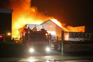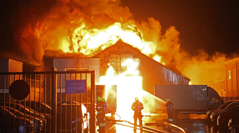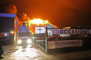 Zeer grote brand bij autobedrijf in Boesingheliede