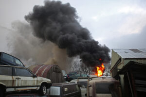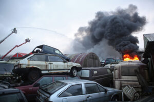 Vijfhuizen – Een grote brand op het industriegebied van Vijfhuizen heeft donderdagmiddag voor flinke zwarte rookwolken gezorgd. Rond kwart over twee brak de brand uit bij een autosloperij en loods met meerdere vrachtwagentrailers aan de Achterasweg Vijfhuizen.